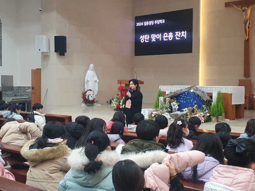 2024년 12월 28일 토요일 마리아홀에서주일학교 은총잔치가 있었습니다.아이들과 함께 즐거운 성탄 은종 잔치가 될 수 있..